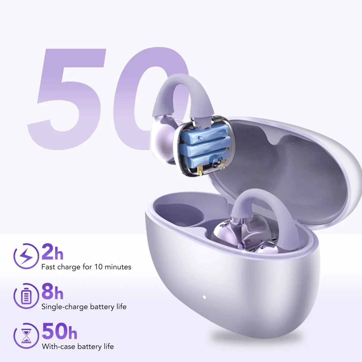 Open Ear Earbuds, Wireless Earbuds, Bluetooth Headphones with Mic, Adaptive Noise Cancelling Calls, Bluetooth 5.4, 50H Playtime, Light Weight, Clip on Earbuds for Workout/Running (Purple)