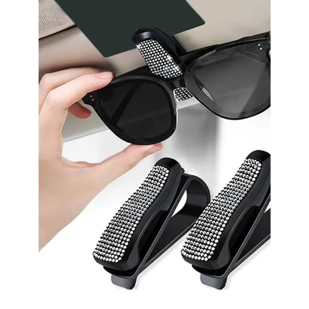 H1906P 1 pieza con diseño de diamante de imitación parasol de coche Gafas Soporte
