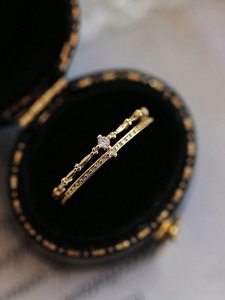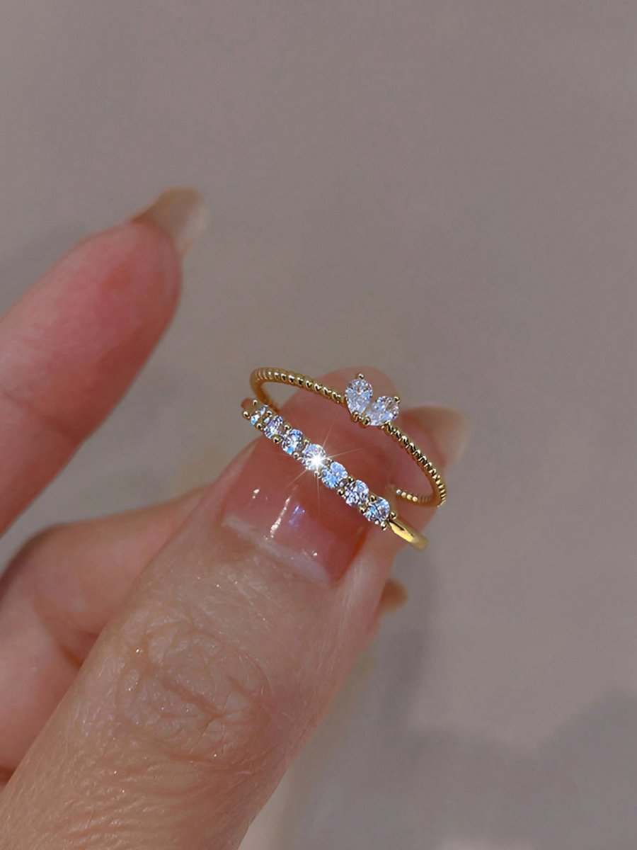 H1213P 1 Pieza Anillo De Doble Capa De Plata De Ley 925 Y Circonio Cúbico Elegante, Romántico Y Hermoso Para Mujer, Perfecto Para Fecha, Compromiso Y Regalo De Bodas JoyerÃa Nupcial
