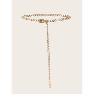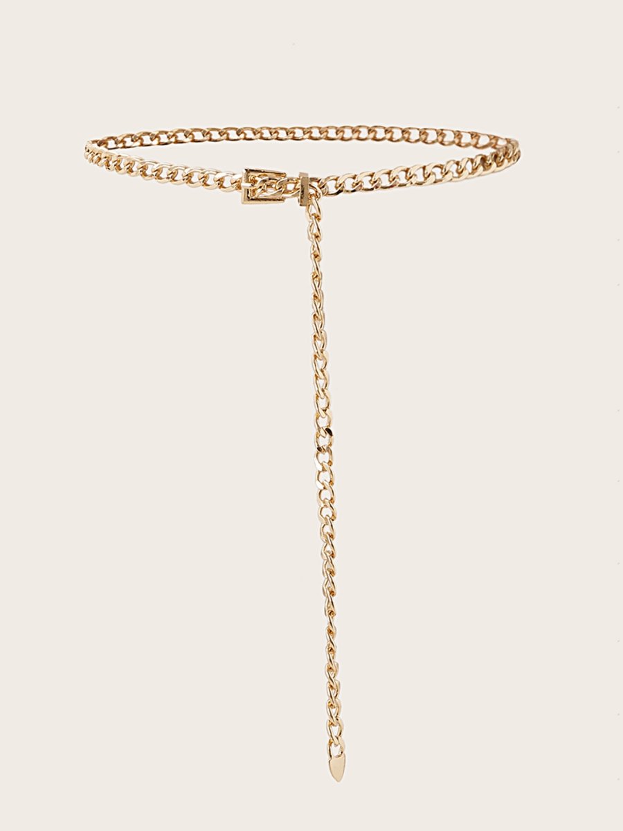 H1687P 1 pieza Cinturón de mujer simple de calle con hebilla de cadena de metal y cintura elástica para vestidos/pantalones, adecuado para uso diario