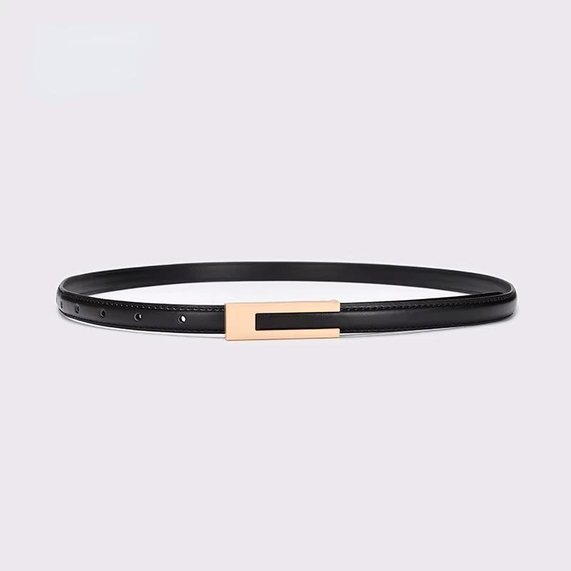 H3303P Cinturón de cuero genuino para mujer, hebilla de aguja dorada, decoración informal, versátil, a la moda