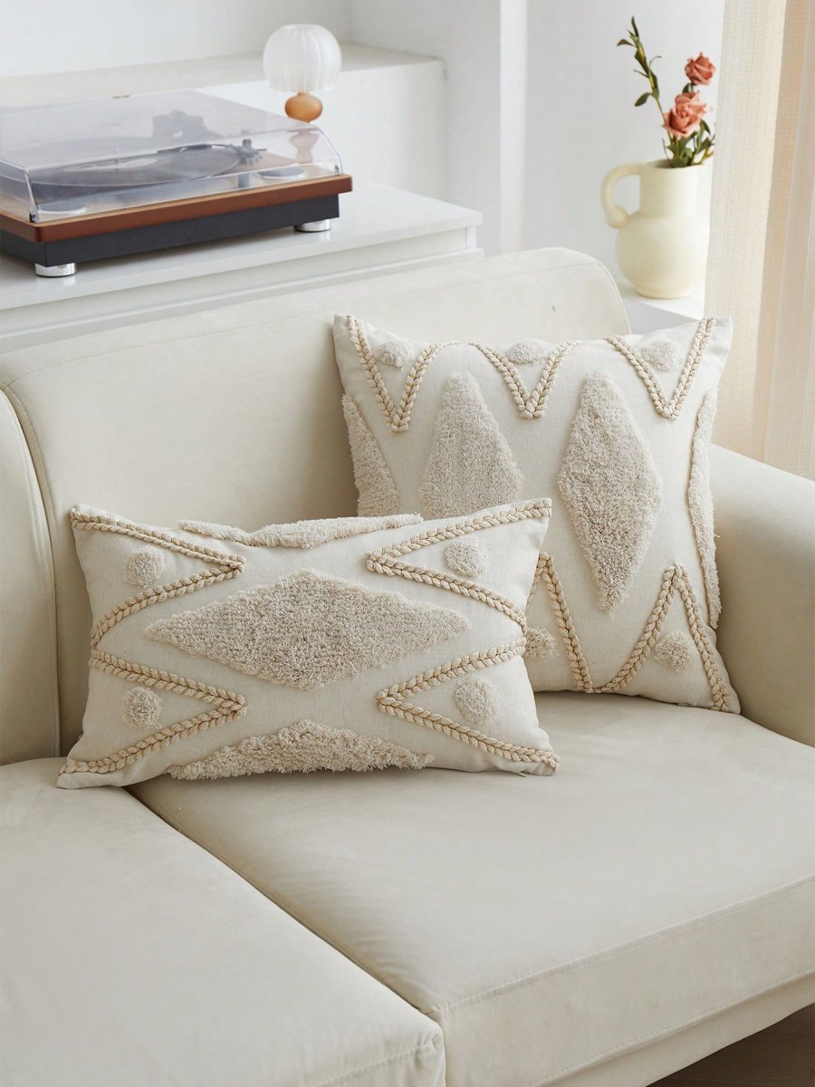 H1746P 1 pieza Funda de cojín bordada, terciopelo de punto de lona, patrón geométrico