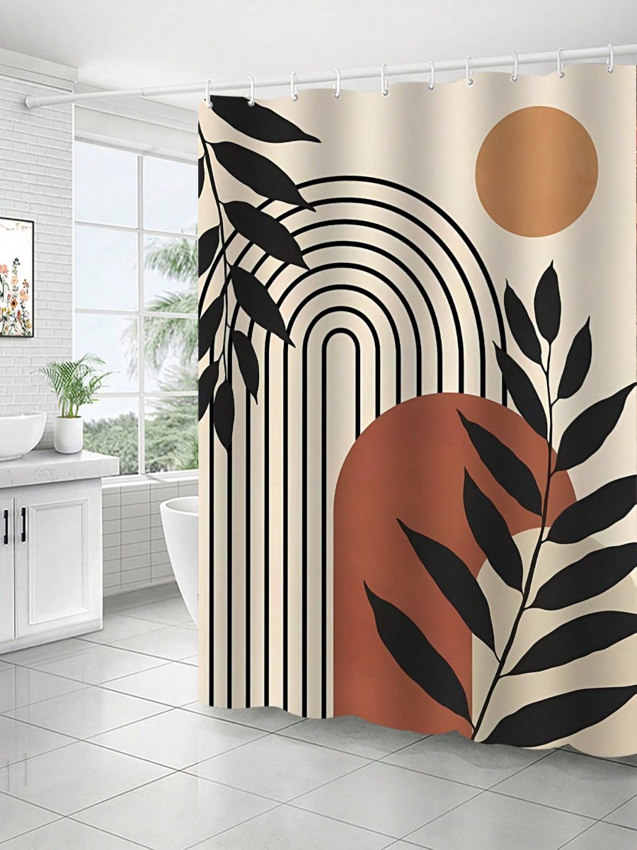 H1329P 1 Pieza Cortina De Ducha De Tela De Poliéster Con Diseño Geométrico Moderno, A Prueba De Agua Y Resistente Al Moho, Cortina De Partición Para Baño