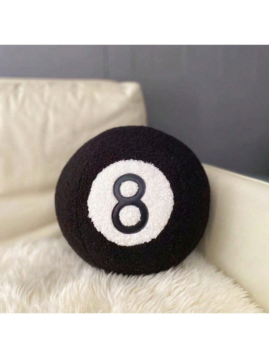 H1296P 1 Pieza Cojín Decorativo De Diseño Redondo En Forma De Bola De Piscina Negra Con Diseño PU De 8 Etiquetas, Cojín Creativo De Almohada Para Sofá, Cojín De Respaldo Decorativo Para El Hogar En Todas Las Estaciones