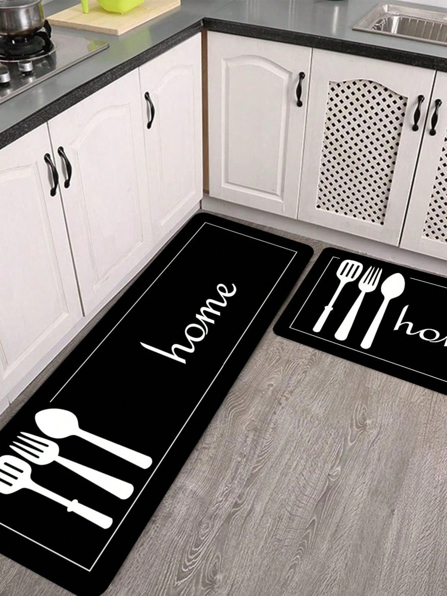 H1204P 1 Pieza Alfombra De Cocina Impresa De Utensilios De Mesa, Alfombra De Poliéster Antideslizante Y Antiincrustante, Adecuada Para La Cocina, La Puerta De Entrada, El Centro De Cuidado Infantil, El Balcón De La Entrada, La Sala De Comedor, Lavable, Decoració