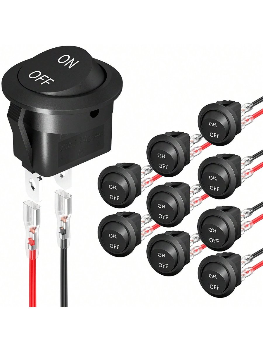 H2033P 10 Piezas Interruptor Basculante Redondo De Encendido / Apagado De 12 V Interruptor Basculante Circular De Cc De 12 Voltios Interruptor Basculante De Dos Pines Spst 6a / 250v 10a / 125v Ca 20mm Interruptor Basculante Pequeño Con Cables Para Coche, Barco M