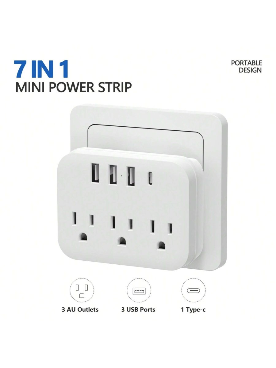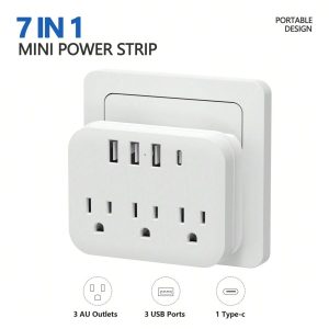 H3843P Extensor de salida de enchufe múltiple de 7 en 1 con USB, separador de salida de pared eléctrico con 4 puertos USB (1 USB C) y 3 salidas, tiras de alimentación de adaptador de cargador de pared para oficina, mesita de noche, viaje