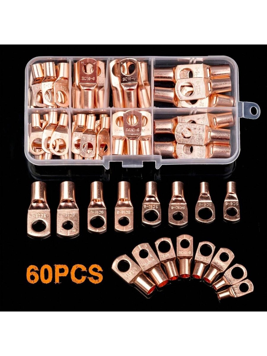 H2262P 60piezas Anillo Conector de Terminal de Cable SC6-25 Conector de Cobre Connector de Cable Desnudo para Conexión de Cables de Voltaje Set