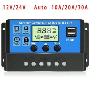 H3552P Controlador de carga solar, controlador de panel solar 12V/24V con pantalla LCD ajustable, regulador de baterÃa de panel solar con puerto USB, controlador de panel solar 10A 20A 30A