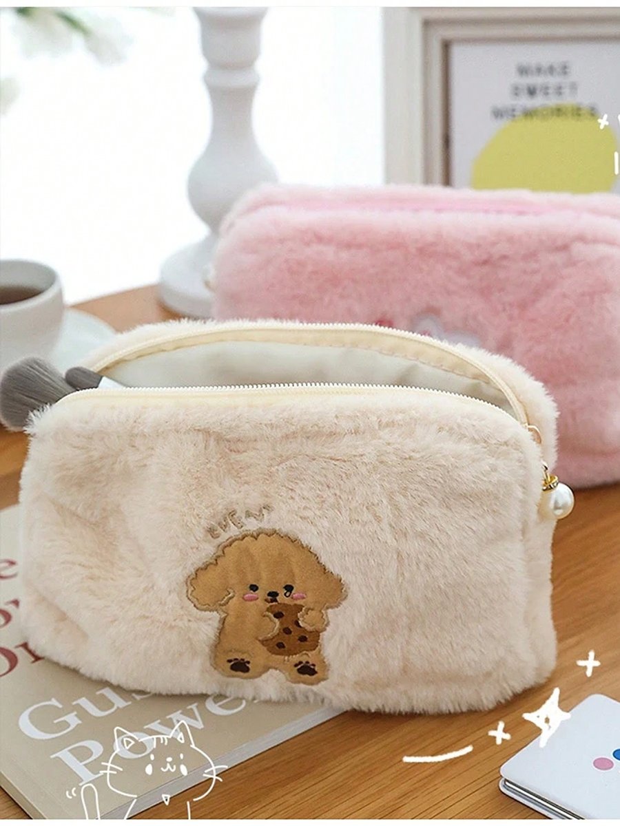 H1630P 1 pieza Bolsa blanda octogonal grande con capacidad mayor de color beige con diseño de cachorro lindo para cosméticos, bolsa de maquillaje, bolsa de cuidado de la piel, bolsa de artÃculos de tocador, cubos de embalaje, esenciales de viaje, esenciales de c