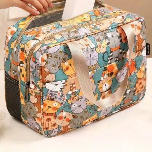 H1638P 1 pieza Bolsa de cosméticos de viaje con diseño de gato animado, Caja de almacenamiento portátil de gran capacidad para maquillaje con separación húmeda y seca y con asa, Bolsa de tocador,cosmetiquera neceser neceseres de maquillaje