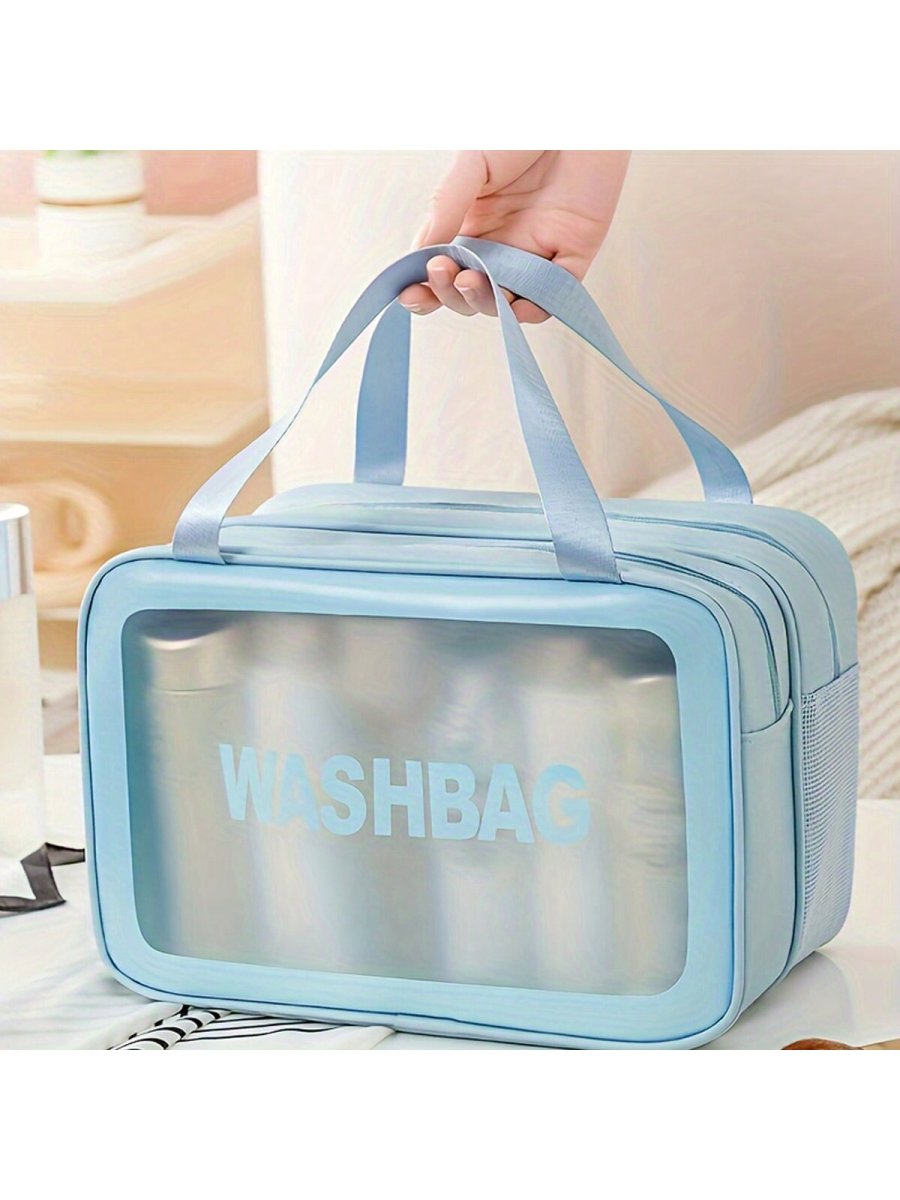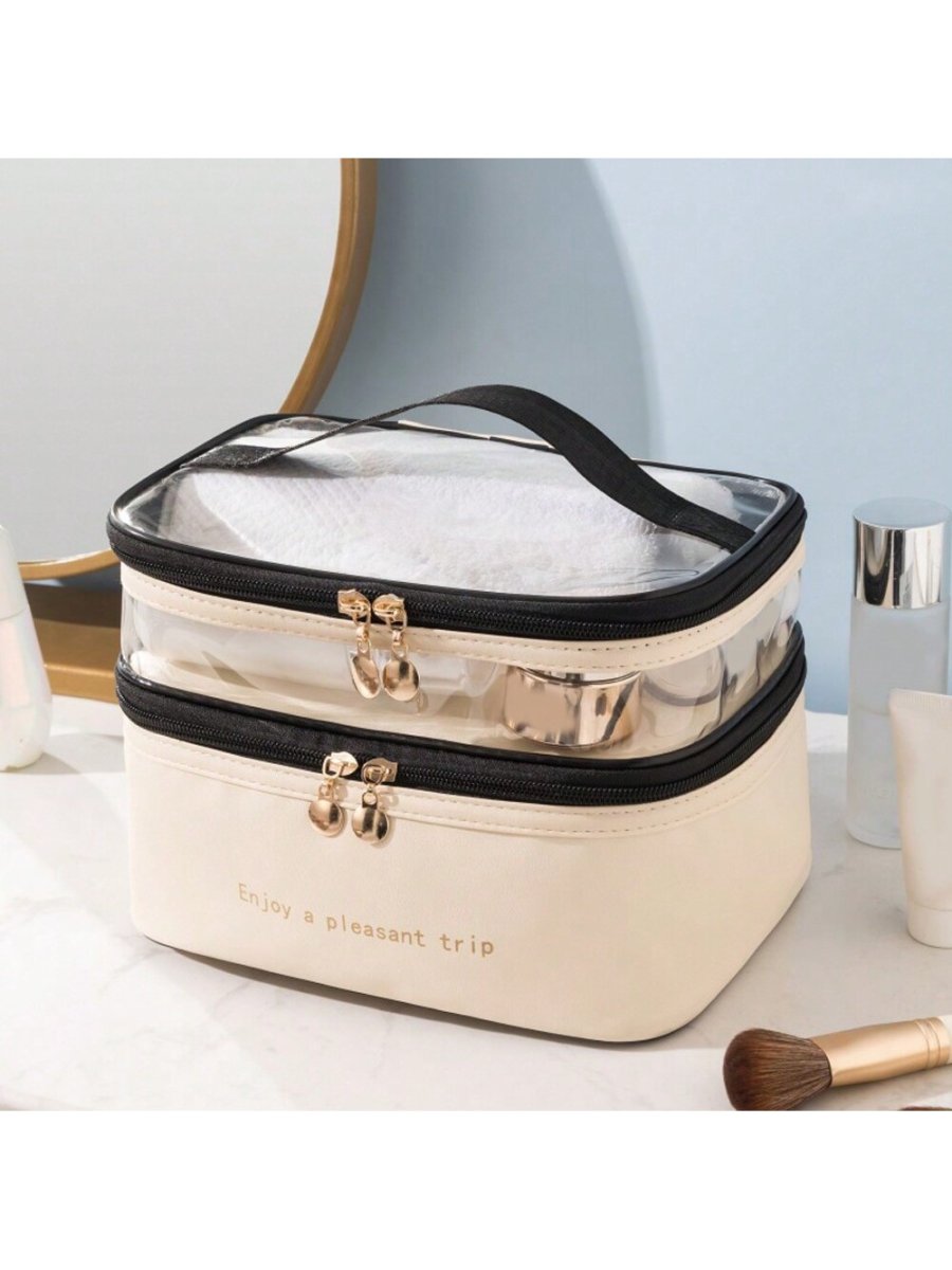 H1645P 1 pieza Bolsa de maquillaje de doble capa, Bolsa de tocador transparente de unicolor, Bolsa de cosméticos portátil de gran capacidad para viajes, organizador de herramientas de belleza y estuche organizador de maquillaje,cosmetiquera neceser neceseres de