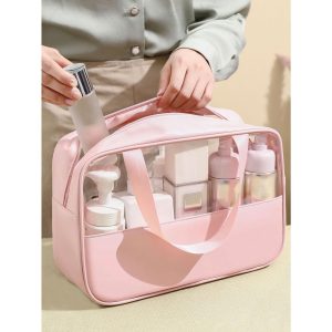 H1916P 1 pieza de bolsa de almacenamiento de gran capacidad de PVC transparente rosa, bolsa de mano, bolsa de maquillaje multifuncional para mujeres y niñas, viernes negro, bolsa de maquillaje, bolsa de cuidado de la piel, neceser, cubos de empaque, esencial de