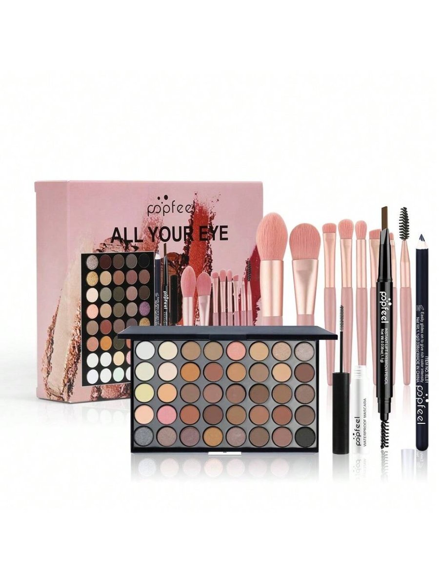 H4992P POPFEEL Kit de maquillaje para ojos, sombra de ojos, máscara de pestañas, lápiz de cejas, delineador de ojos, conjunto de pinceles