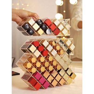 H4960P Organizador Creativo De Lápiz Labial, Caja De Almacenamiento Transparente Y Apilable Para Brillo De Labios, Perfecto Para Entusiastas Del Maquillaje, Habitación, Hogar, Dormitorio, Baño, Casa, Decoración De Habitación Rosa, Artículos De Viaje, Bolsa De Re