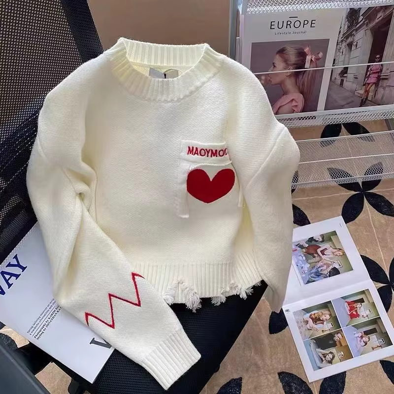 H5764P Suéter blanco de punto con bordado de amor para mujer, jersey de moda coreana, Tops de manga larga para oficina, Otoño e Invierno