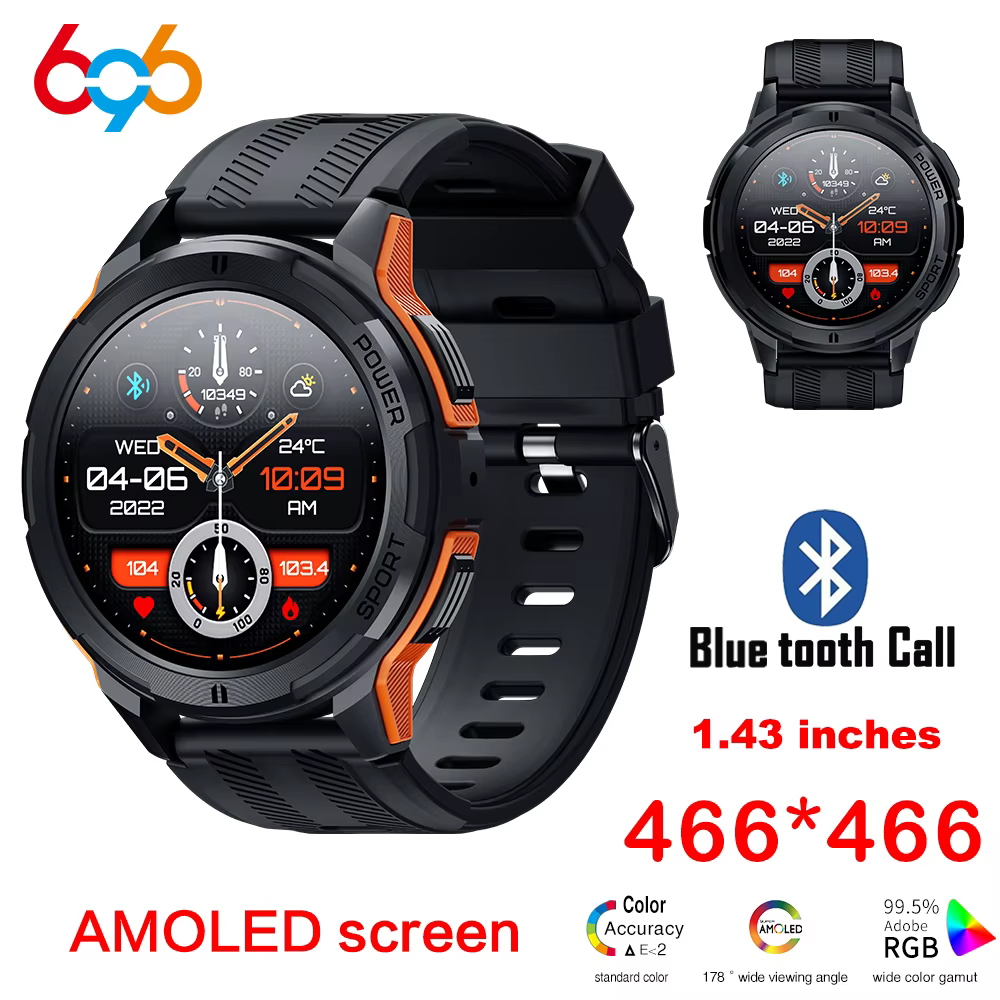 H2900P C25 Relojes inteligentes para hombres Pantalla AMOLED 1.43 “1ATM Monitor de ritmo cardÃaco a prueba de agua Reloj inteligente deportivo Bluetooth Llamada Mujeres Fitness
