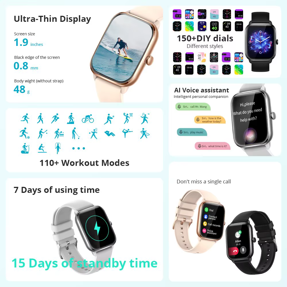 H5332P Reloj inteligente C61 para hombre y mujer, pulsera con pantalla completa de 1,9 pulgadas, Bluetooth, llamadas, Monitor de ritmo cardÃaco y sueño, modelos deportivos