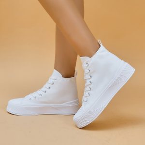 H6338P deportivo blanco Zapatos de lona para con diseño de puntada con cordón arriba alta Zapatillas deportivas