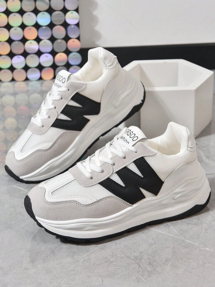 H6337P deportivo Zapatillas deportivas cuña para de color combinado con diseño de parche de letra con cordón delantero Zapatillas deportivas