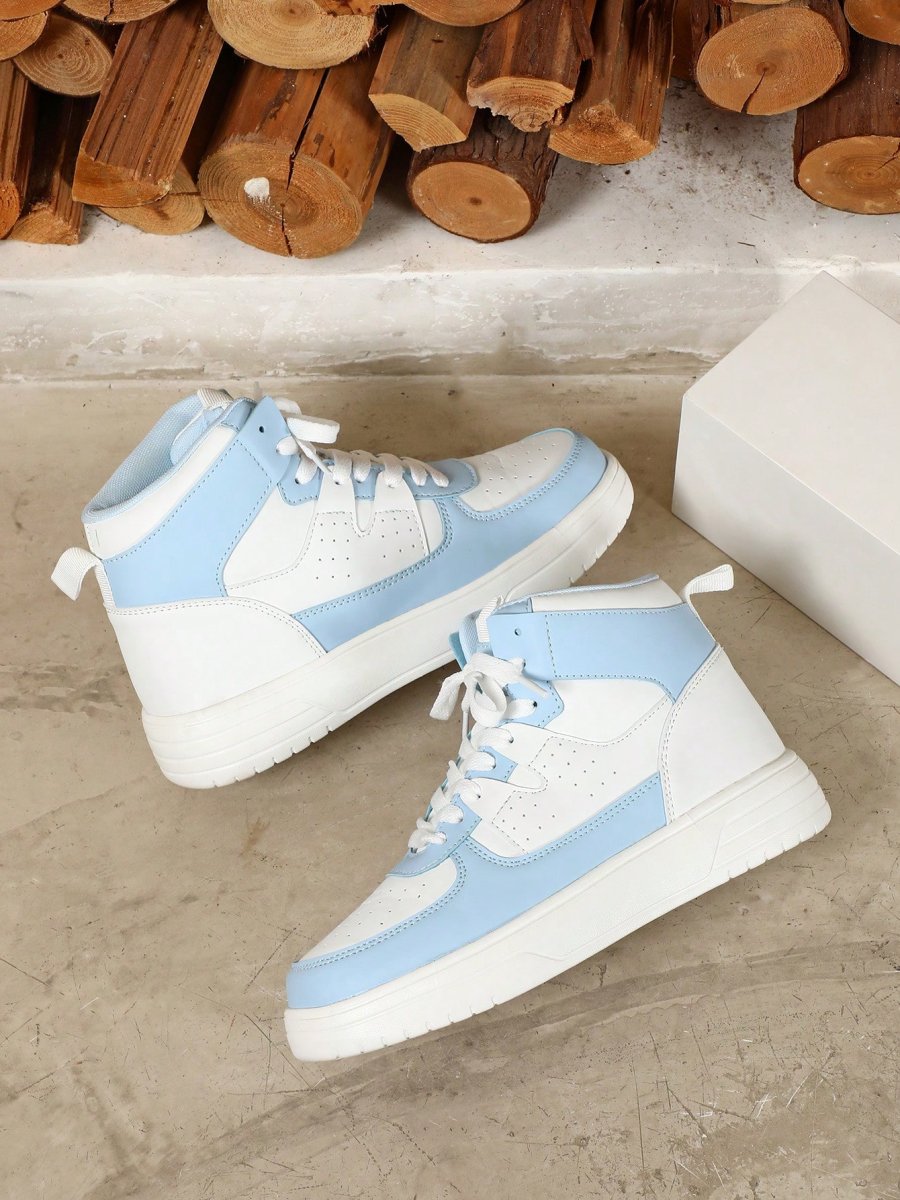 H6305P Zapatos deportivos transpirables y cómodos de moda para mujer, zapatillas gruesas con cordones y bloques de colores