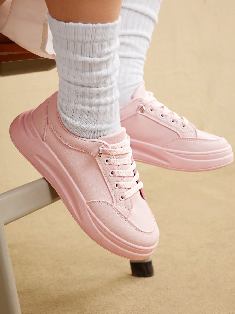 H6303P Zapatos deportivos informales nuevos de estilo coreano para mujeres “plus size” de otoño 2023 de unicolor ligero con puntera redonda y suela gruesa con cordones