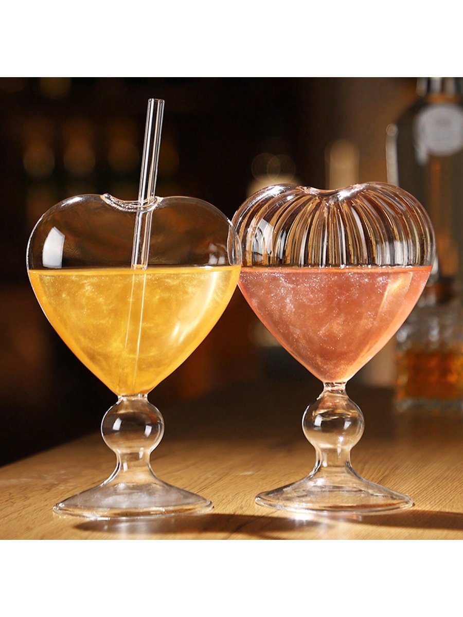 H1895P 1 pieza Vaso de vidrio con estilo INS con linda pajita en forma de corazón para beber agua, jugos, cócteles o café en verano