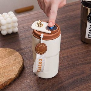 H1872P 1 pieza Taza de pantalla táctil de 450ML/15.2oz con indicador de temperatura, botella térmica hermética de doble capa de acero inoxidable 316, diseño antideslizante para café y té