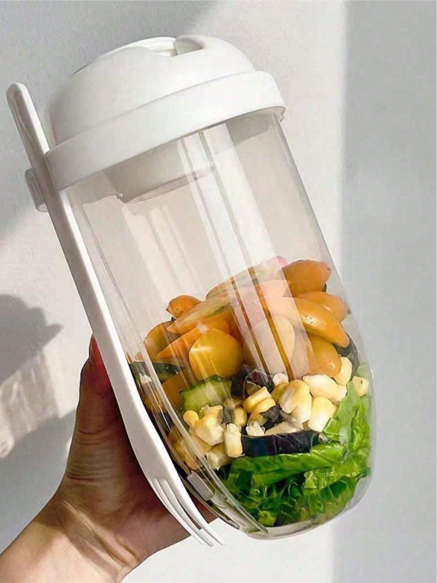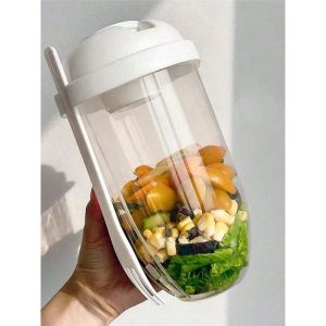 H1874P 1 pieza Taza para desayuno para llevar, taza para llevar de yogur, taza para cereales con tenedor, contenedor para avena durante la noche, contenedor para bocadillos de yogur portátil y reutilizable, taza de bocadillos de frutas y verduras, utensilios de