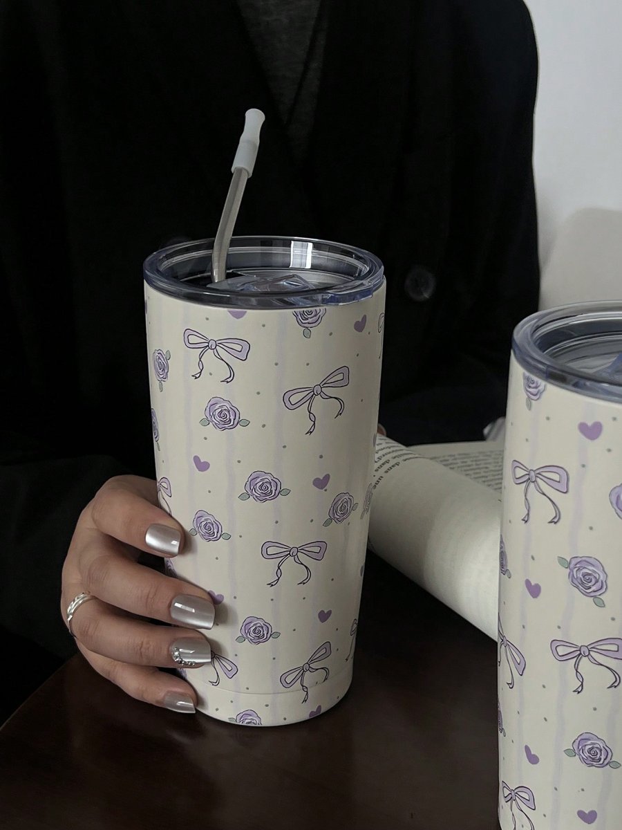 H1896P 1 pieza Vaso frÃo original doble aislado de acero inoxidable con lazo de rosa violeta de 20 oz (600 ml), taza de café, taza de agua, taza de viaje, regalo de festival/cumpleaños, taza de estudiante, diseño de alta gama (la pajilla no está incluida)