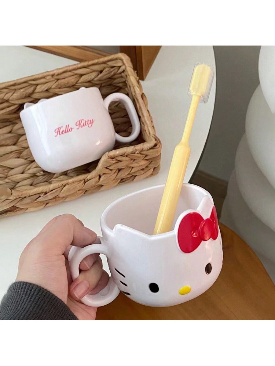 H1873P 1 pieza Taza de plástico Hellow Kitty, linda taza de enjuague bucal de dibujos animados, taza de mango de cepillo de dientes Kawaii, tazas portátiles de café con leche, taza de café para suministros al aire libre