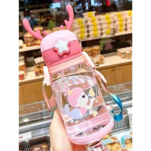 H1660P 1 pieza Botella de agua decorativa gráfica de dibujos animados con cornamenta, botella de agua con diseño de chica y pez para interiores y exteriores