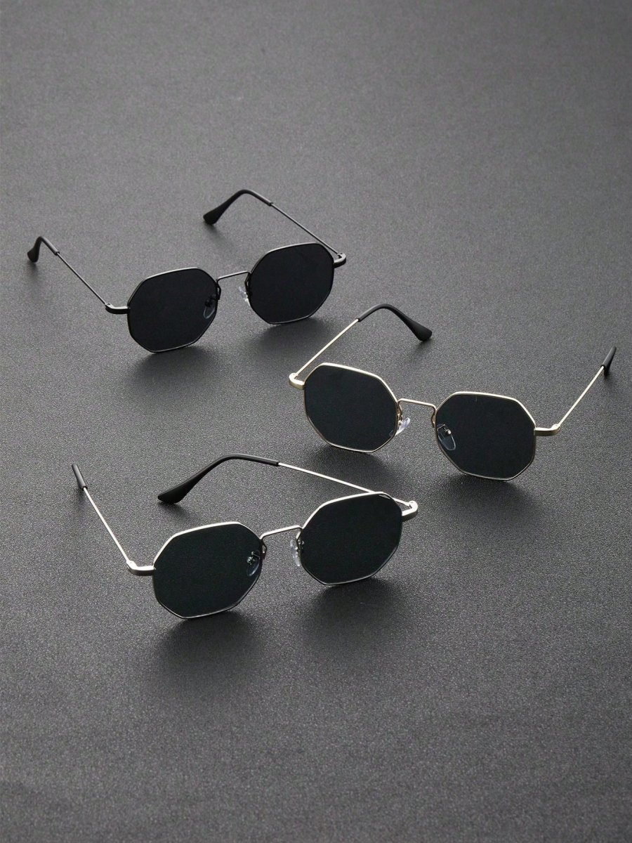 H2164P 3 piezas de gafas de sol clásicas y de moda para hombres con montura de metal geométrica para viajes al aire libre, conducción y accesorios de ropa.
