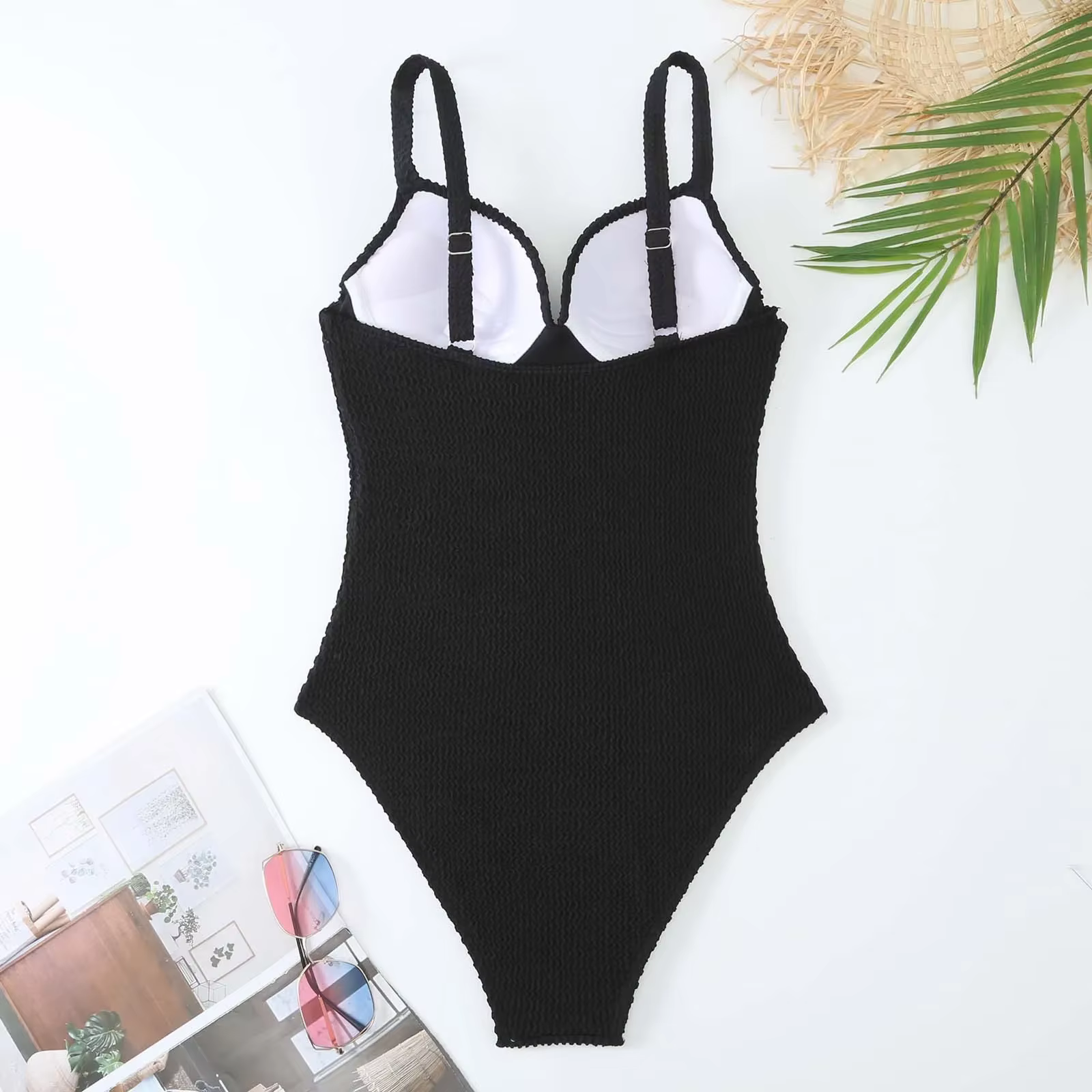 H2568P Bañador de una pieza de Color liso para mujer, traje de baño Sexy ajustado con cuello en V, Bikini de copa dura, traje de baño de realce con tirantes y espalda descubierta, Monokini de verano