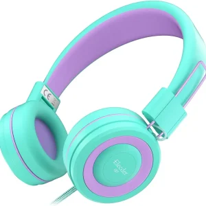 Elecder i37 – AudÃfonos plegables de diadema para niños, niñas y adolescentes, conector de 3.5mm, compatible con iPad, celular, computador, MP3/4, Kindle, MP3/4, kindle y tablet, verde/morado