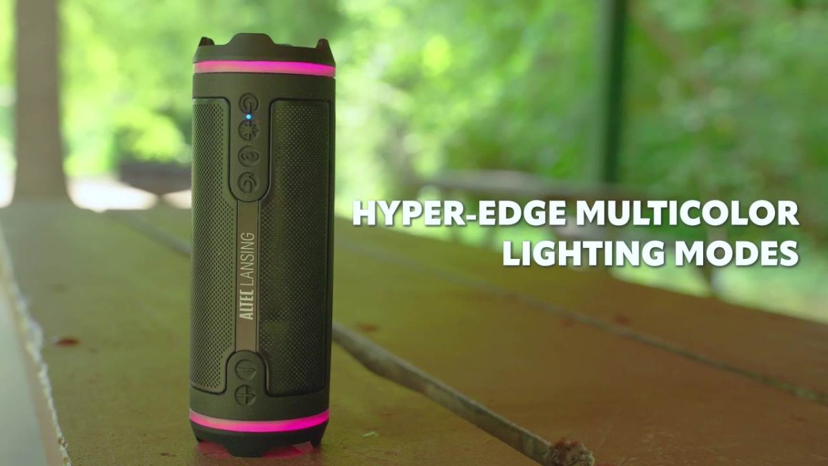 El altavoz inalámbrico HydraMotion 2.0 EverythingProofTM está repleto de caracterÃsticas versátiles y ofrece un sonido potente. Con hasta 12 horas de duración de la baterÃa, incluido el soporte del altavoz y la correa de transporte, ¡LED tu música a cualquier lugar! La HydraMotion 2.0 puede manejar las condiciones de cualquier aventura con su clasificación IP67 EverythingProofTM. Mejore su experiencia de audio con los modos de luz led HyperEdge para iluminar su sonido. HydraMotion 2.0 ofrece 2 formas de jugar, ya que puedes orientar tu altavoz vertical u horizontalmente. Aumenta tu sonido con la función Party Sync que te permite emparejar 100+ HydraMotion 2.0S. ¡La fiesta mejoró con Altec Lansing!