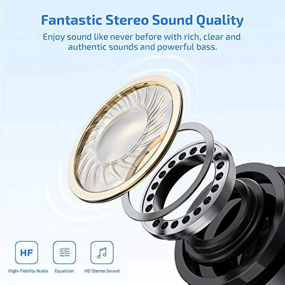 - Tiempo de Reproducción Superlargo de 27 horas: Con solo una carga, nuestros auriculares ofrecen hasta 9 horas de reproducción, y un total de 27 horas cuando se combinan con el estuche de carga, con un puerto USB-C que asegura una carga rápida.