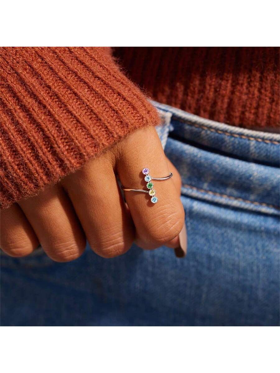 H1219P 1 Pieza Anillo De Plata S925, Diseño Elegante Y Moderno Con Cinco Piedras De Circonia Cúbica De Colores, Adecuado Para Bodas/fiestas/diario/oficina/uso Informal, El Regalo Ideal Para Madres, Novias, Mejores Amigos O Regalo De Cumpleaños