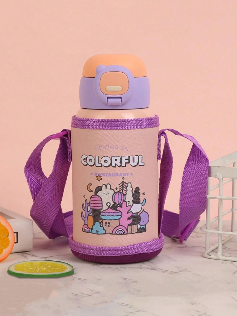 H1242P 1 Pieza Botella De VacÃo De Acero Inoxidable 304 De 500ml Con Manga Para Taza, Patrón De Dibujos Animados Lindo Con Pajita Aislada A Prueba De Fugas Con Cubierta De Bloqueo Y Cubierta Rebote Portátil, Perfecta Para Deportes Estudiantiles Al Aire Libre