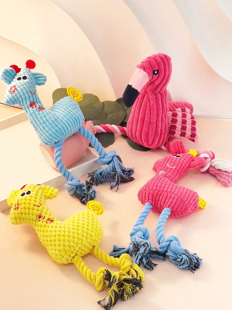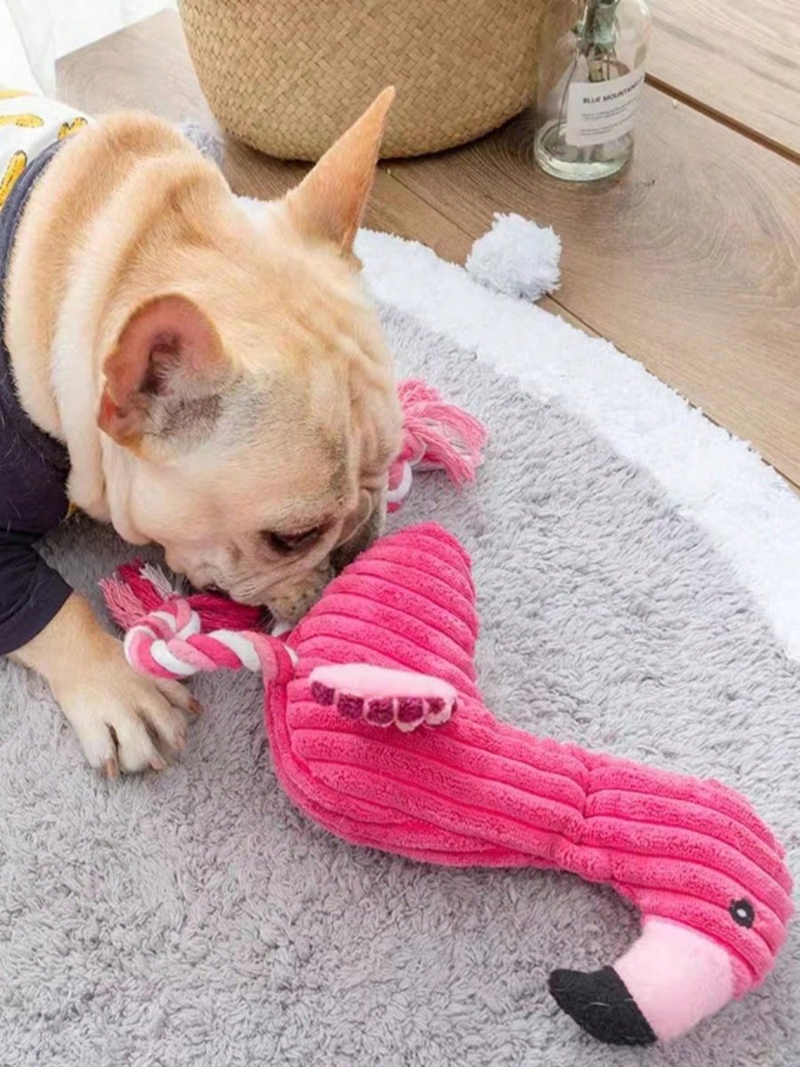 H1396P 1 Pieza Juguete Para Mascotas Con Sonido De Cuerda & Felpa Flamingo Rojo, Para Entretenimiento Y Relajación De Mascotas, Uso Solo Para Mascotas