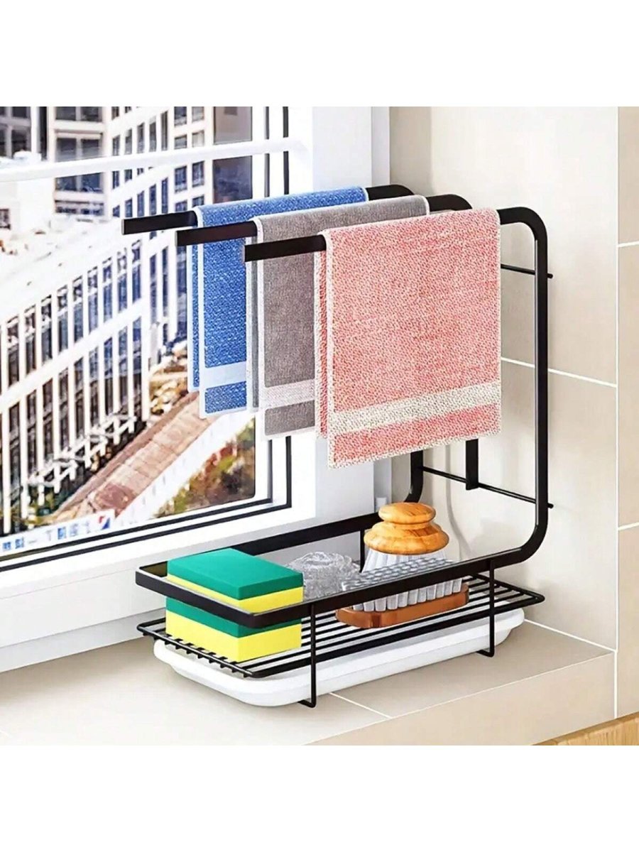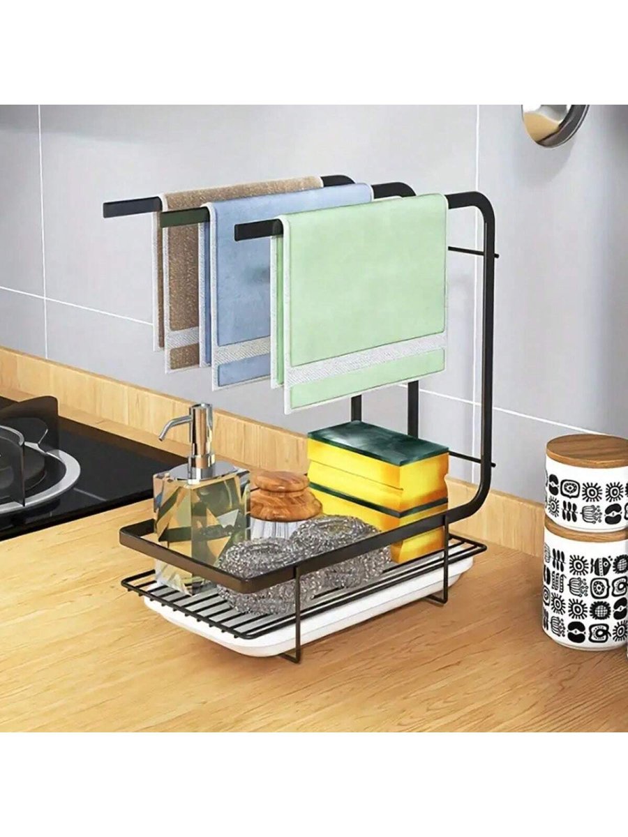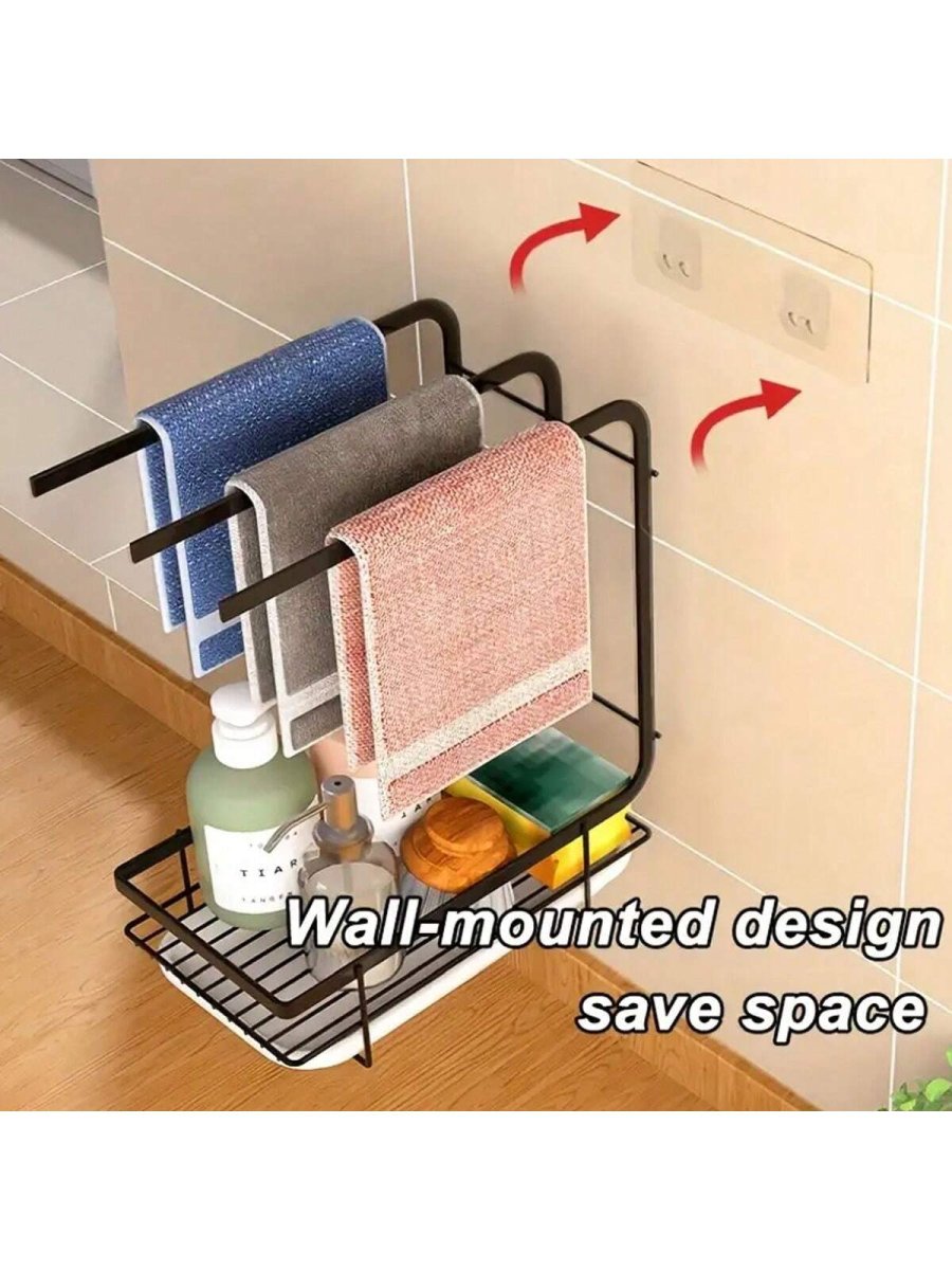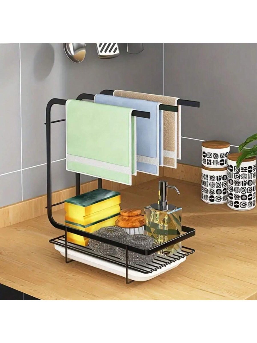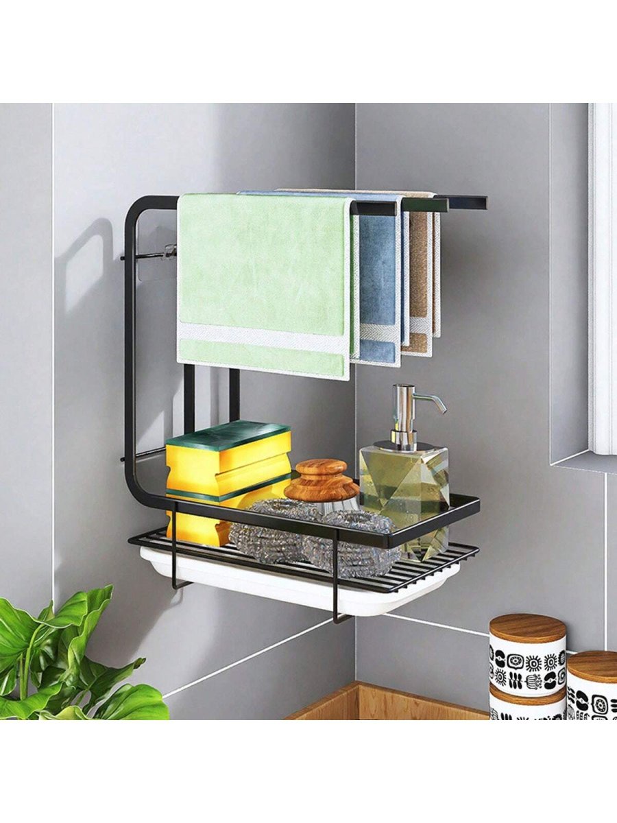H1496P 1 Pieza Toallero De Cocina Para Paños De Cocina, Organizador De Almacenamiento De Pared Para Mesa Sin Perforación, Portarrollos De Alambre De Acero Para Esponjas Y Estropajos Con Bandeja De Drenaje Para Fregadero De Cocina, EstanterÃa De Almacenamiento Pa
