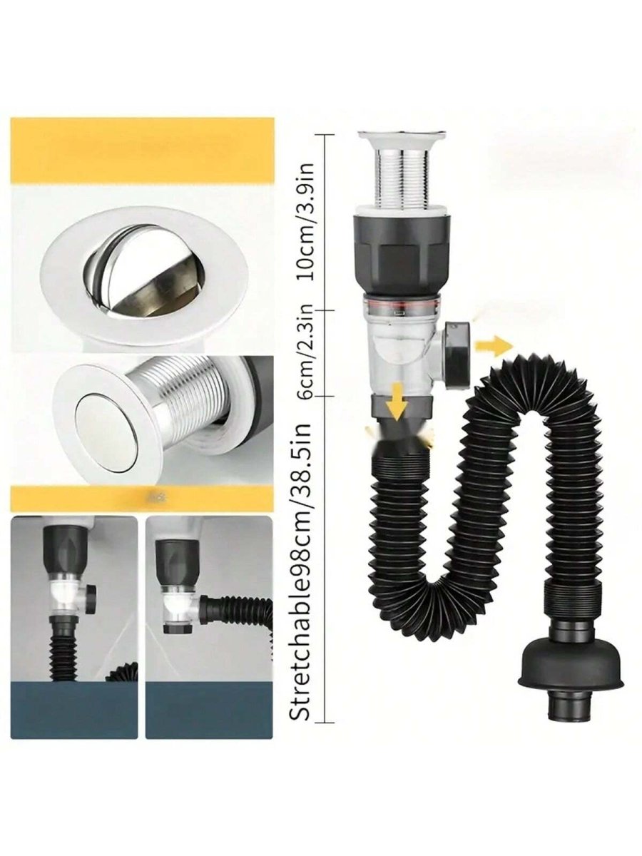 H1498P 1 Pieza Tubería De Desagüe Para Lavabo Universal, Tubo De Desagüe Horizontal / Vertical Para Baño, Cocina, Diseño Doble Anti-mosquito Y Bloqueo De Olores