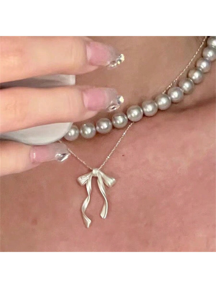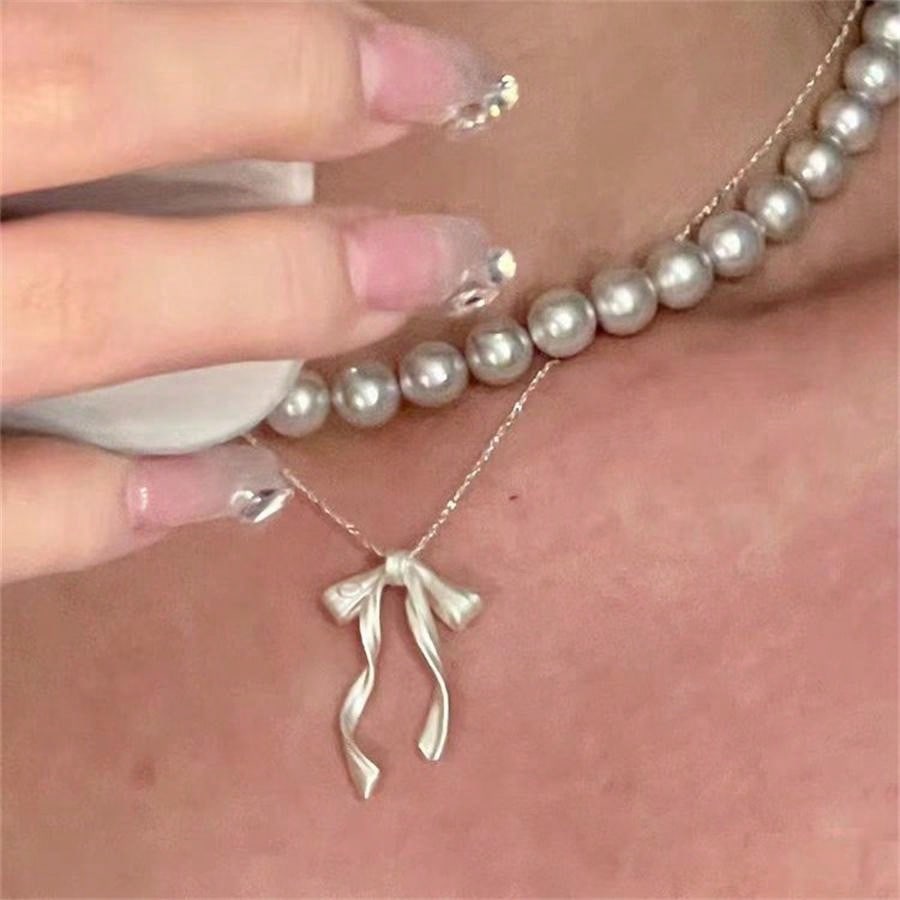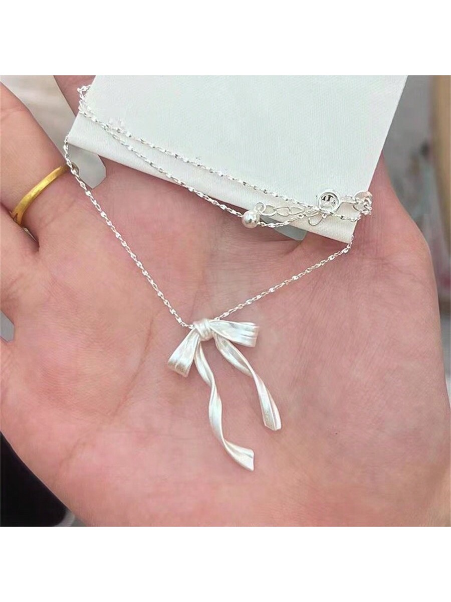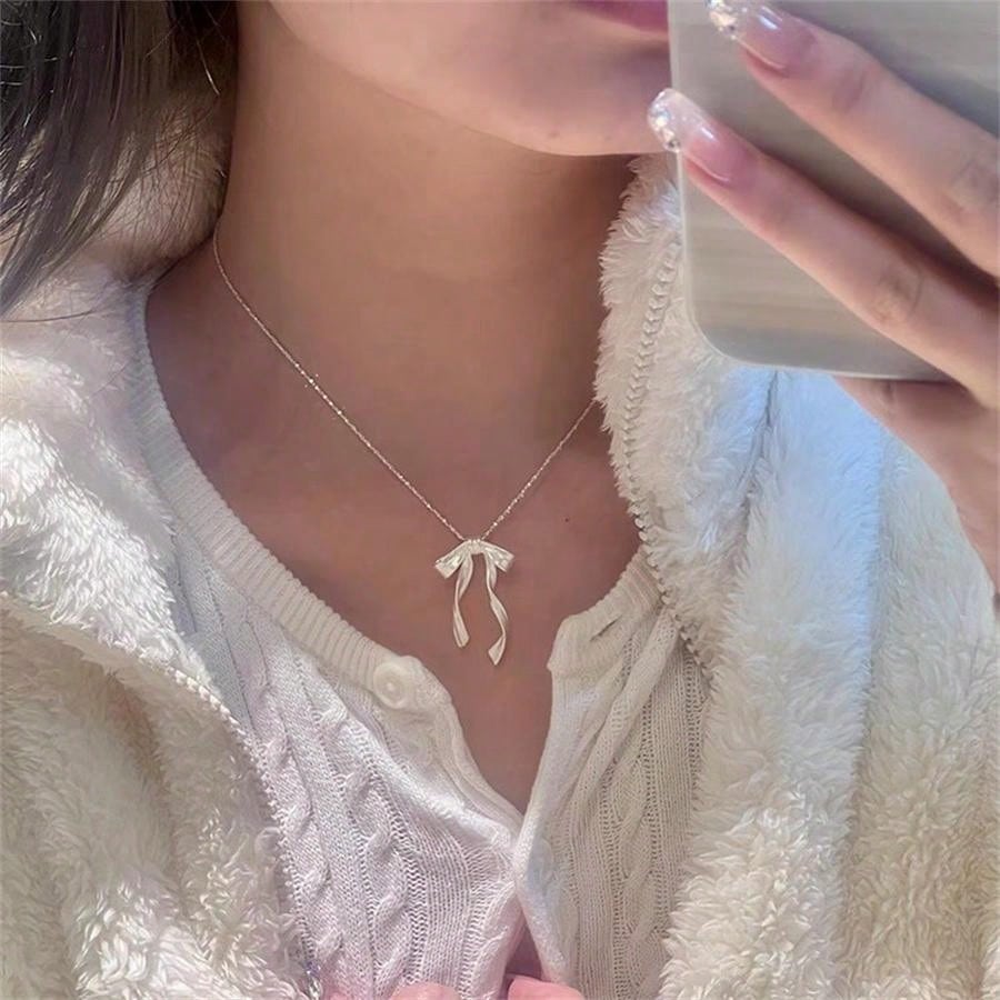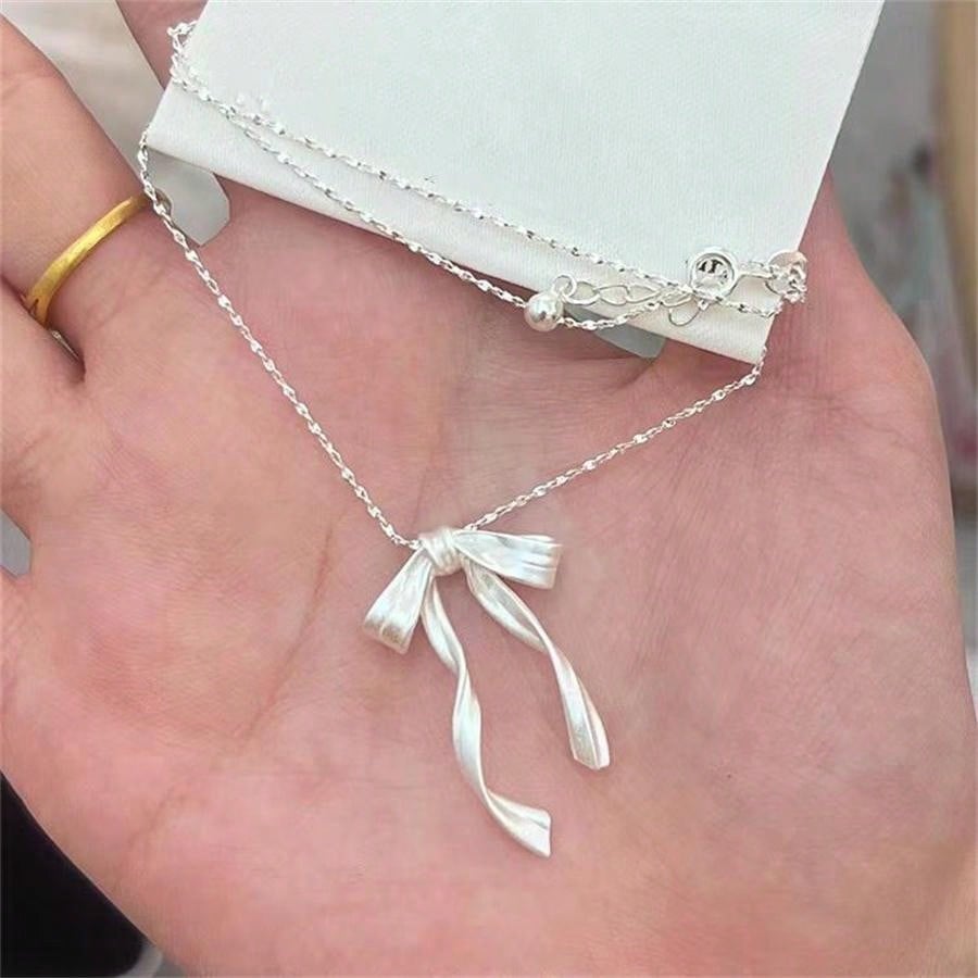 H1713P 1 pieza Collar de lazo de plata pura 925 para mujer, diseño único y de alta gama, cadena de clavÃcula, elegante y de moda