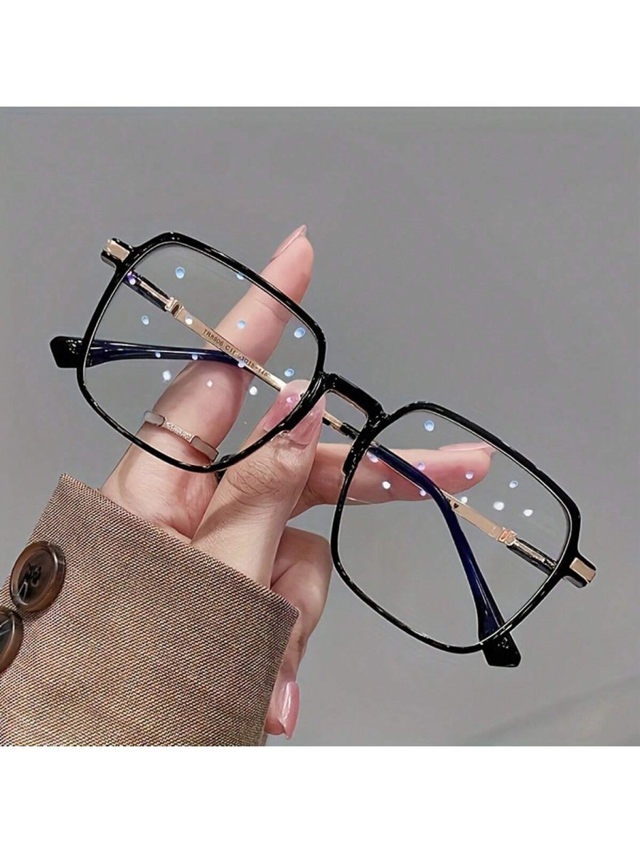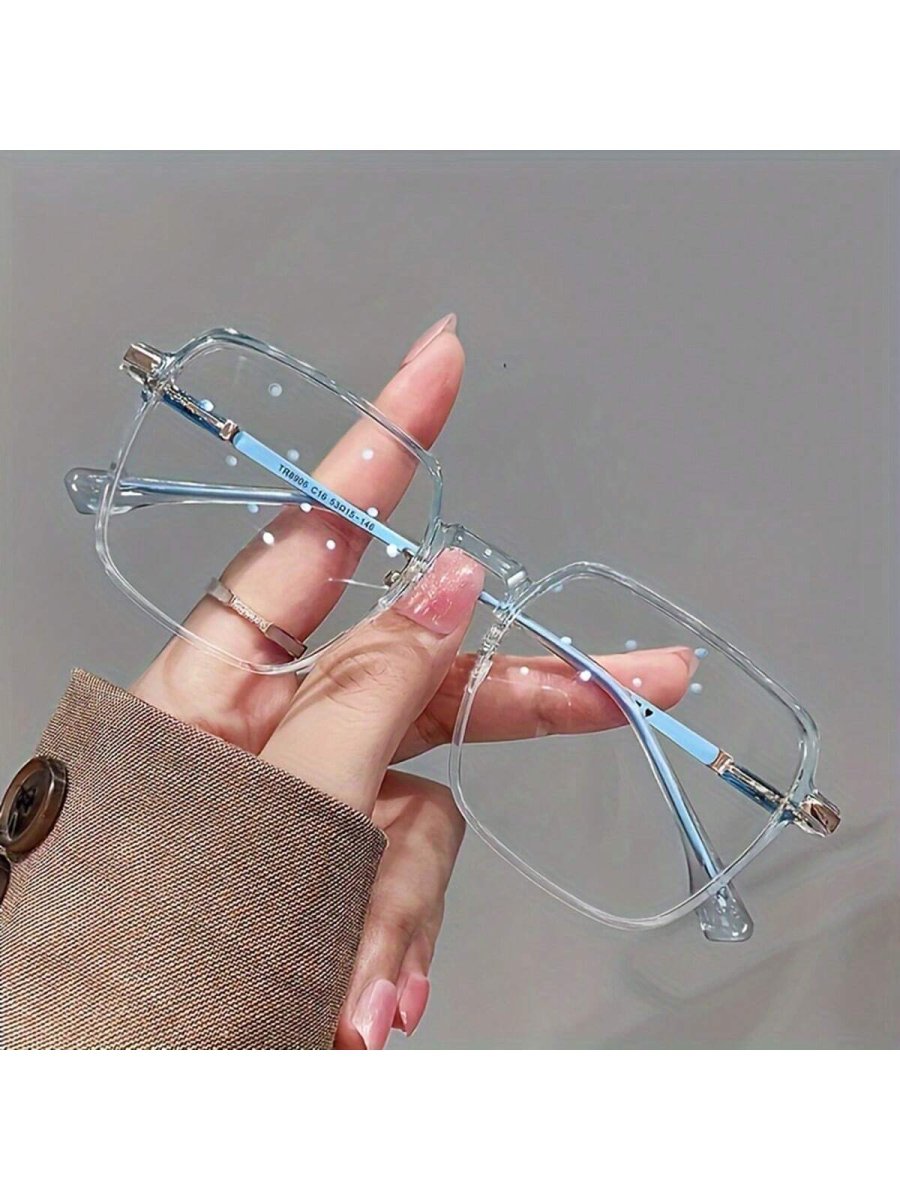 H1757P 1 pieza Gafas de montura cuadrada grande con lente clara, gafas decorativas informales de moda para computadora, accesorios de gafas claras para mujeres y hombres