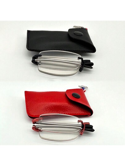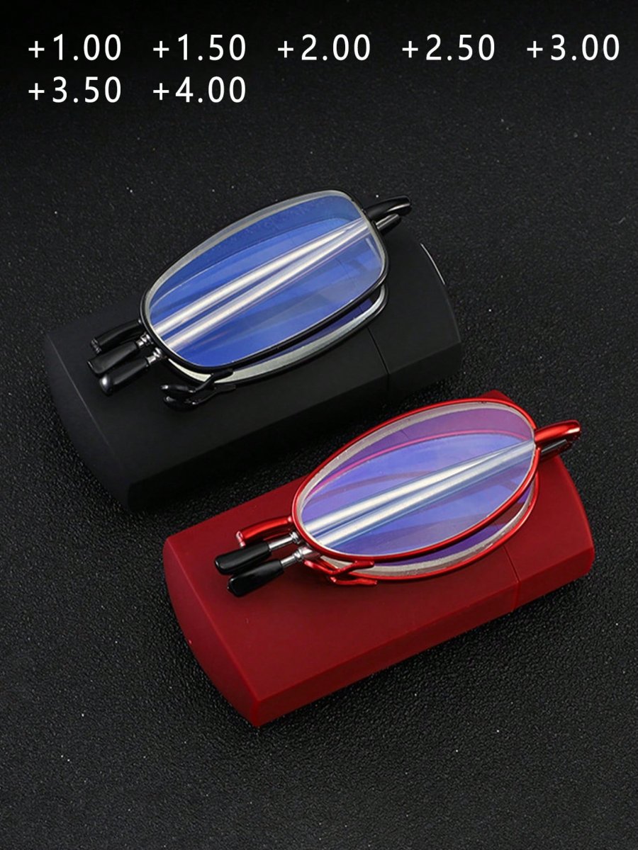 H1774P 1 pieza Gafas plegables de lectura unisex con estuche protector, accesorios de gafas compactos y portátiles con estilo confortables y con lentes transparentes