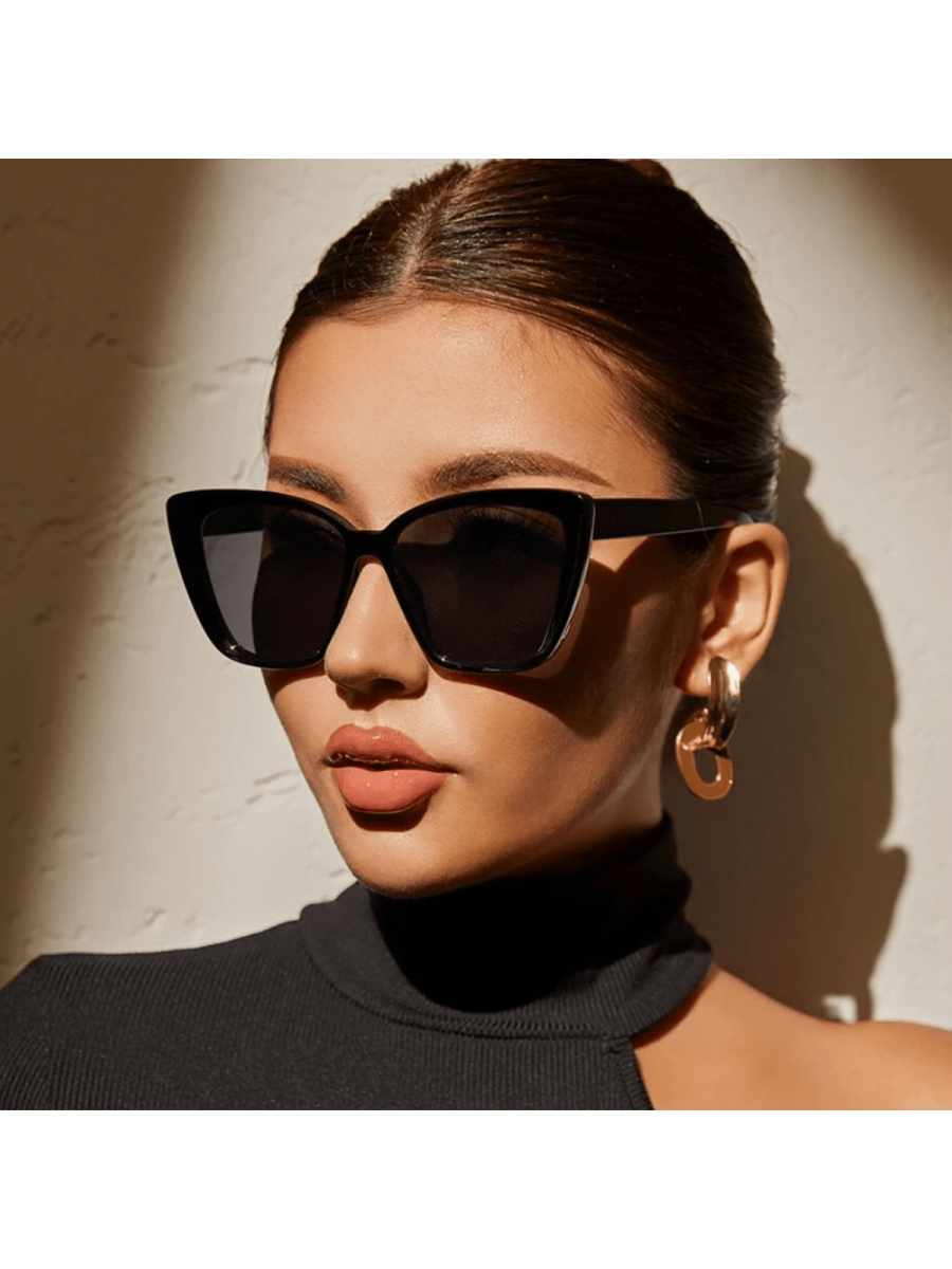H1794P 1 pieza Lentes de sol con forma de ojo de gato para mujeres europeas y americanas, marco negro que modifica el tipo de cara, lentes de sol de moda