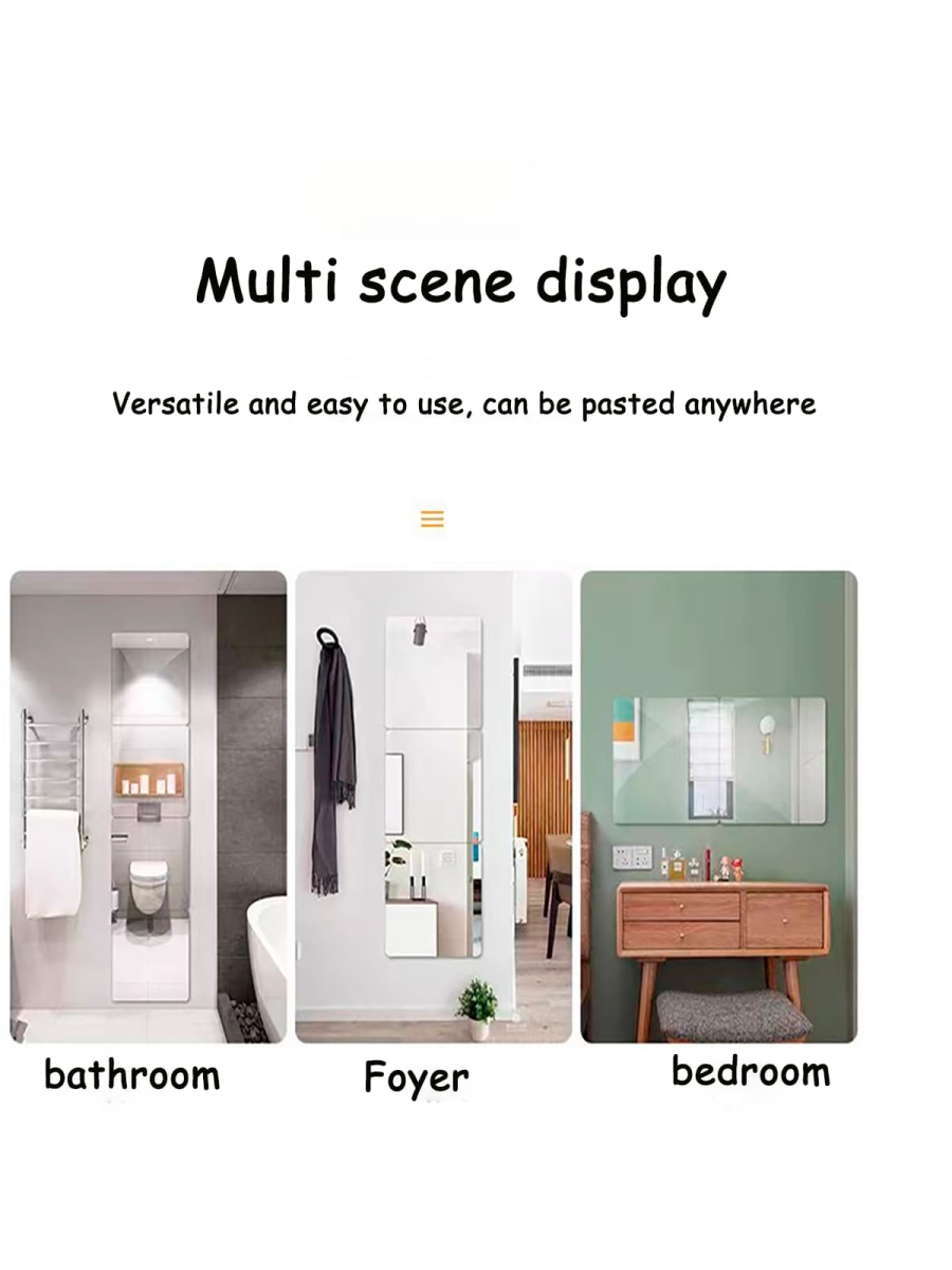 H2186P 4 piezas Espejo de pared irrompible, espejo de acrÃlico irrompible de Body completo para dormitorio, espejo para gimnasio en casa, espejo de baño (combinación aleatoria de soporte adhesivo)