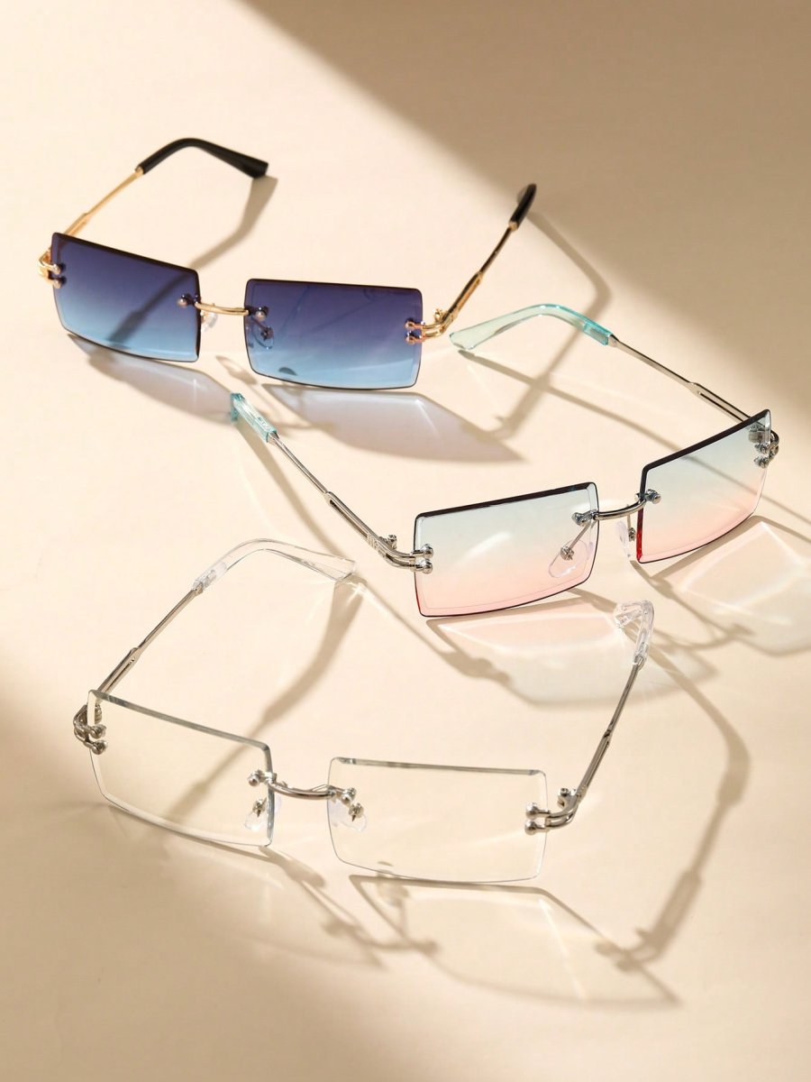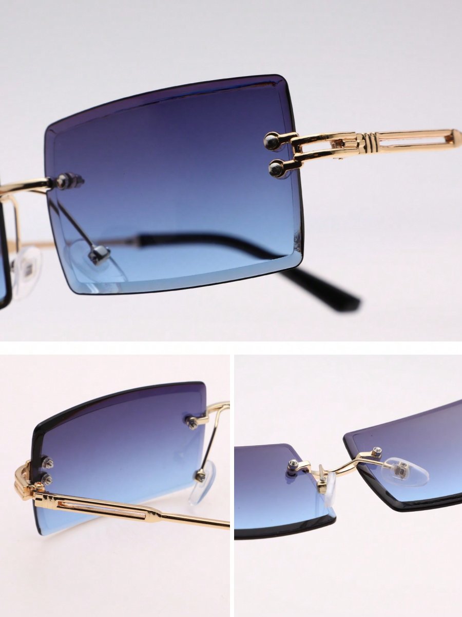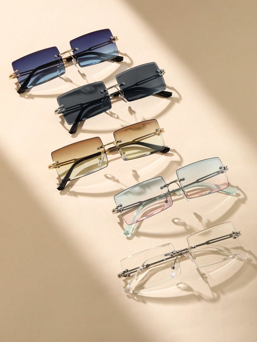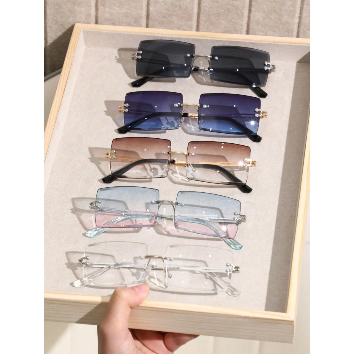 H2231P 5 piezas Gafas de sol con montura cuadrada de metal de moda, colores azul, rosa, negro y marrón, para mujer, accesorios de protección UV para exteriores, gafas elegantes, accesorios de playa
