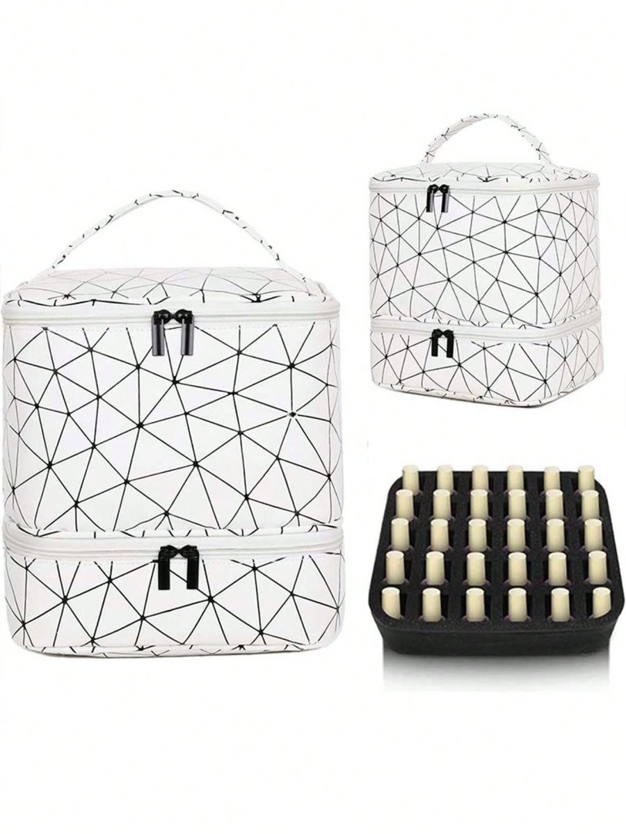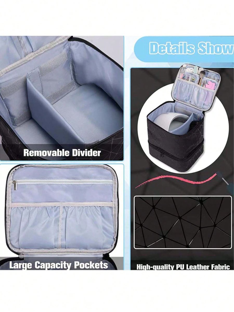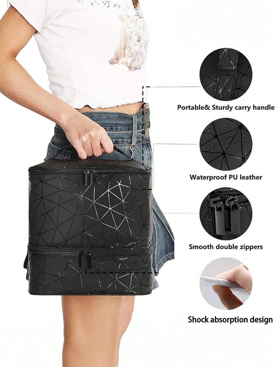 H2722P Bolsa de cosméticos de gran capacidad de patrón de diamante de doble capa, nueva bolsa de cosméticos de doble capa para esmalte de uñas, bolsa de tocador portátil, organizador de maquillaje, almacenamiento cosmético, caja de maquillaje,cosmetiquera necese