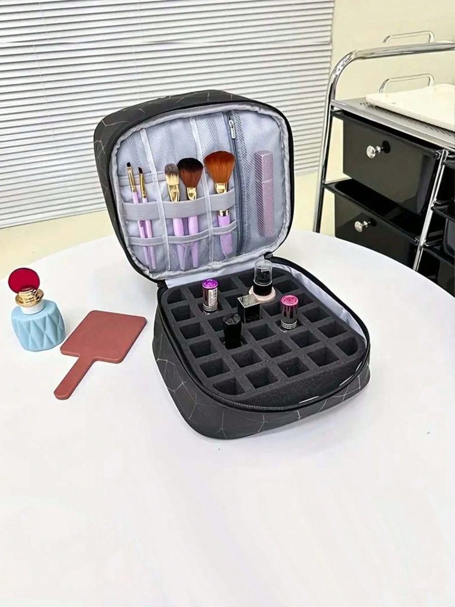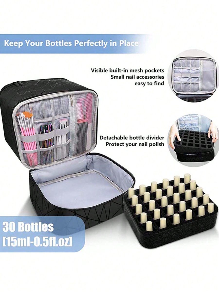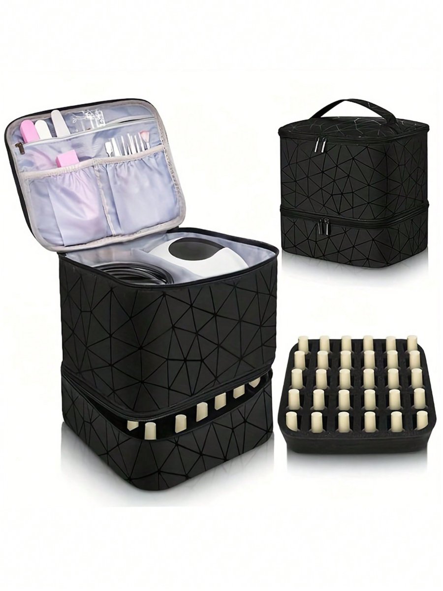 H2722P Bolsa de cosméticos de gran capacidad de patrón de diamante de doble capa, nueva bolsa de cosméticos de doble capa para esmalte de uñas, bolsa de tocador portátil, organizador de maquillaje, almacenamiento cosmético, caja de maquillaje,cosmetiquera necese